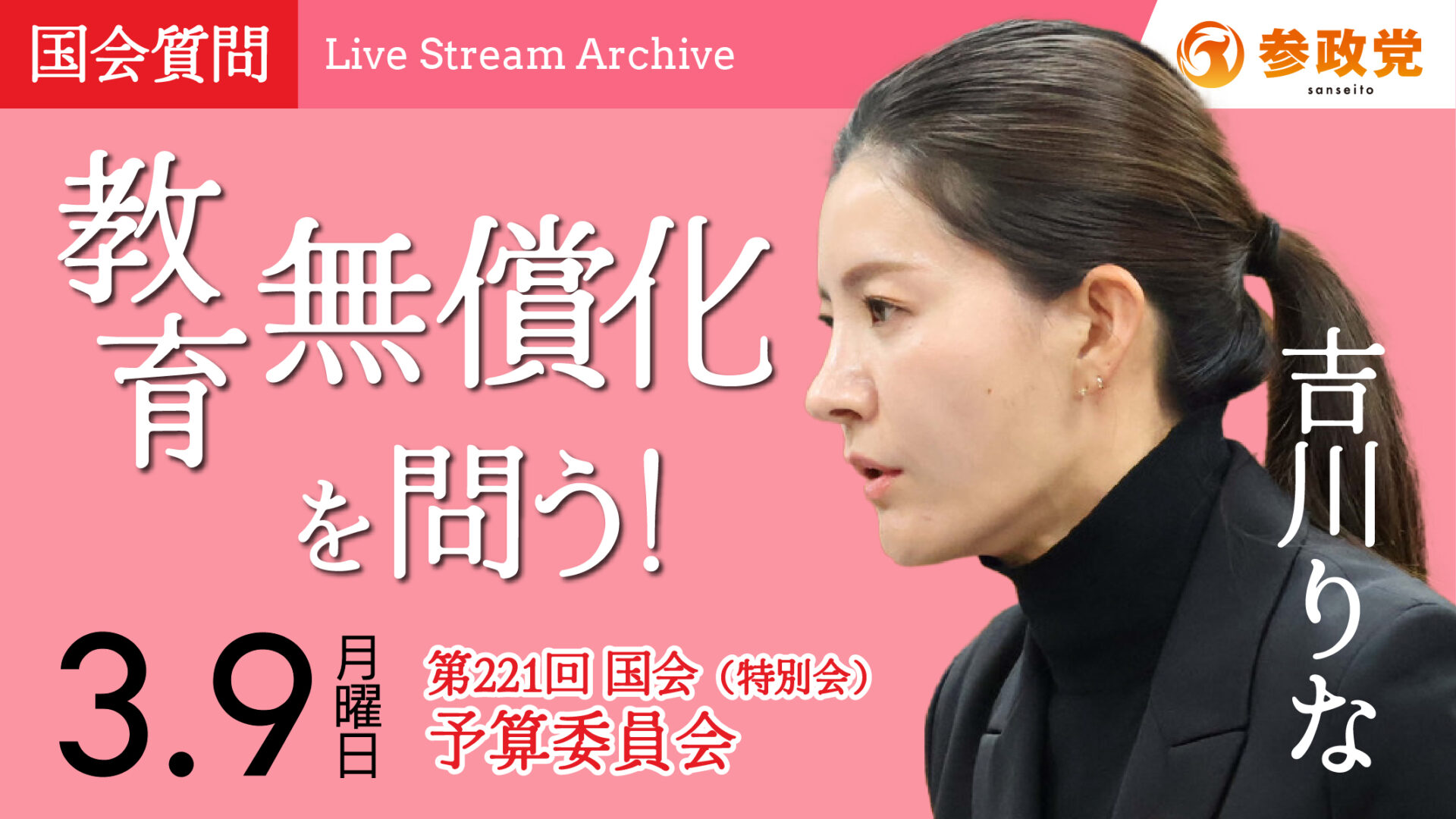 【国会質疑・予算委員会】 教育無償化を問う!|参政党・吉川里奈(R8.3.9)