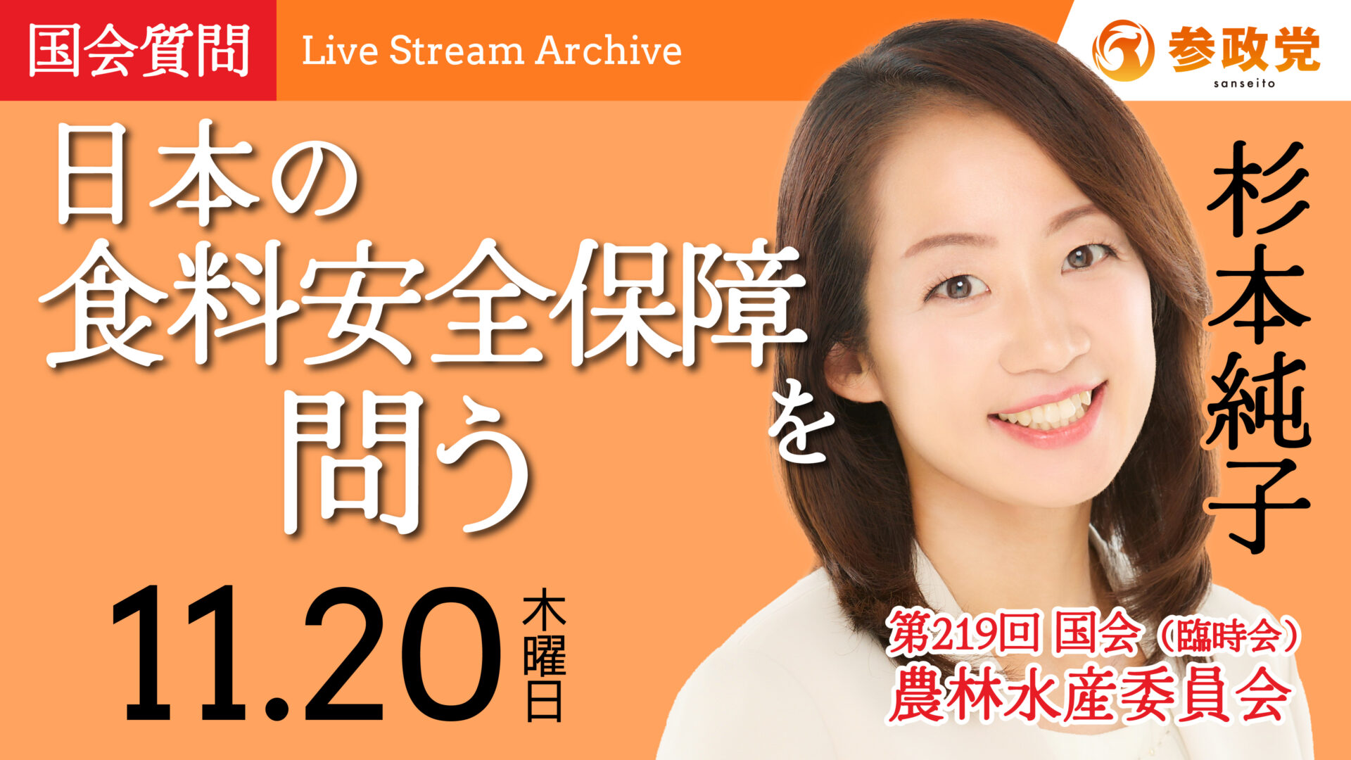 【国会質疑・農林水産委員会】日本の食料安全保障を問う|参政党・杉本純子(R7.11.20)