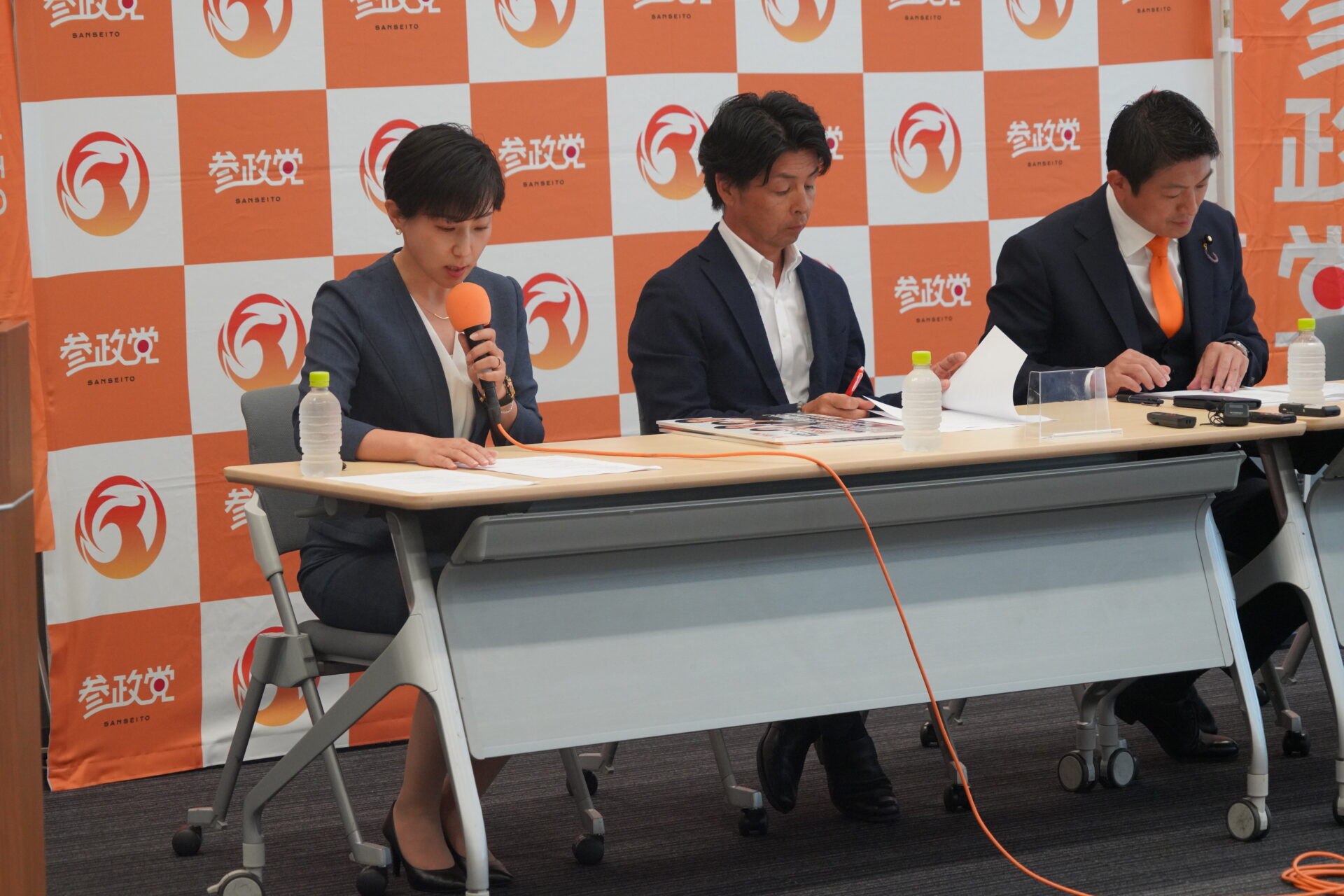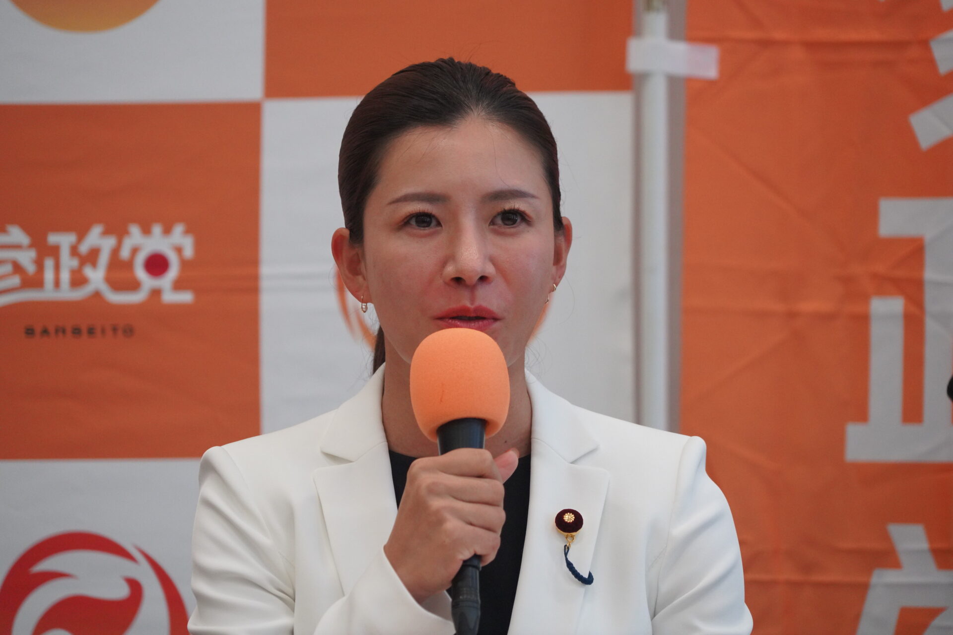 また、宮城県知事選についてです。先週、私が候補者を擁立したいと発言しニュースになりました。いろんな憶測が流れておりますので、現在どのような方針かを発表させていただきますと、宮城には結党当初から活動を支えてくださっているローレンス彩子さんがおりますので、党として出馬要請をしている状況です。当初は今日ご本人を呼び、出馬会見を予定していましたが、昨日の総理辞任を受けた政局の変化により、一時的に見合わせています。今週中にも他から候補者が出る動きがあり、世論調査を含め慎重に判断したいと考えています。