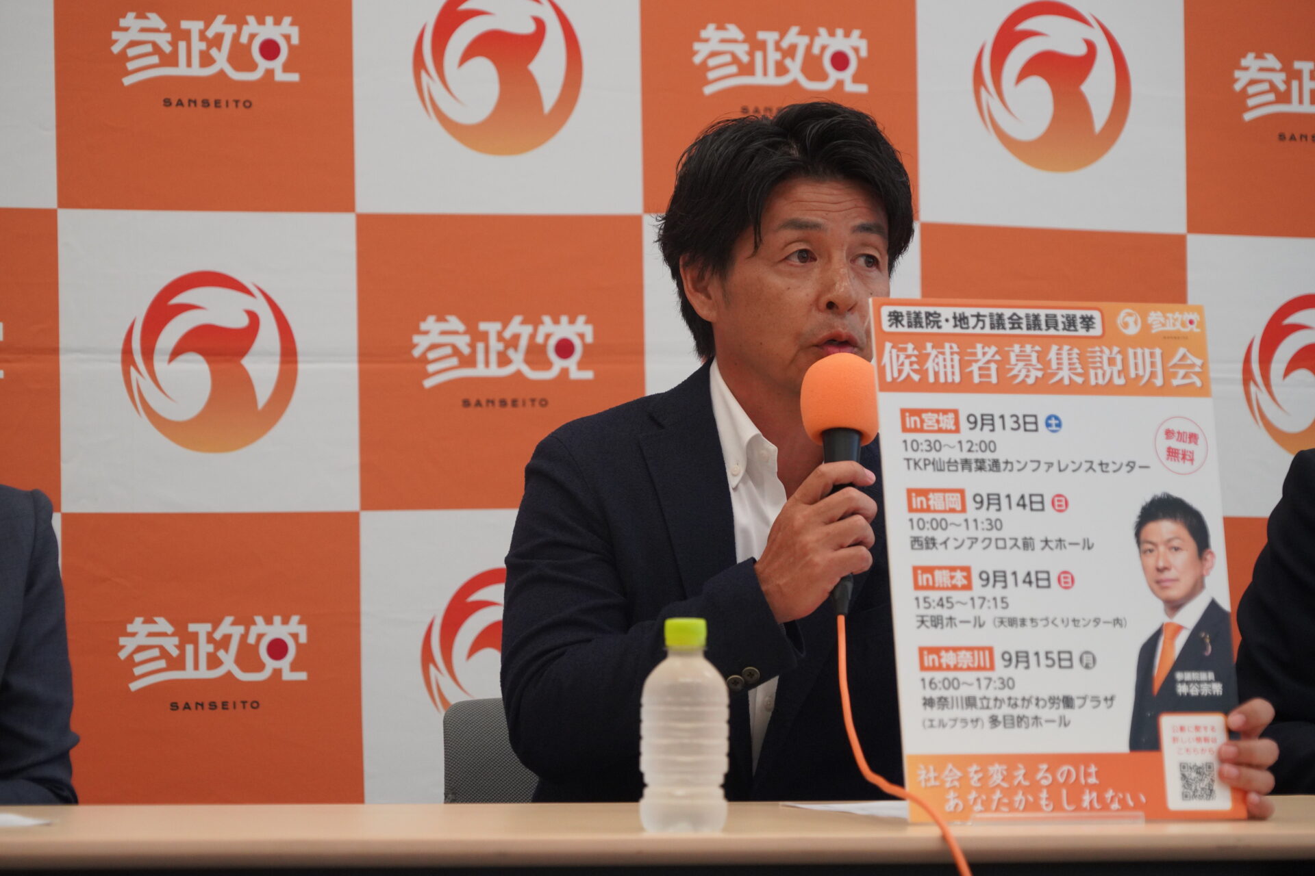 衆議院および地方議会議員選挙の候補者募集説明会を、神谷宗幣代表が登壇し各地で開催いたします。