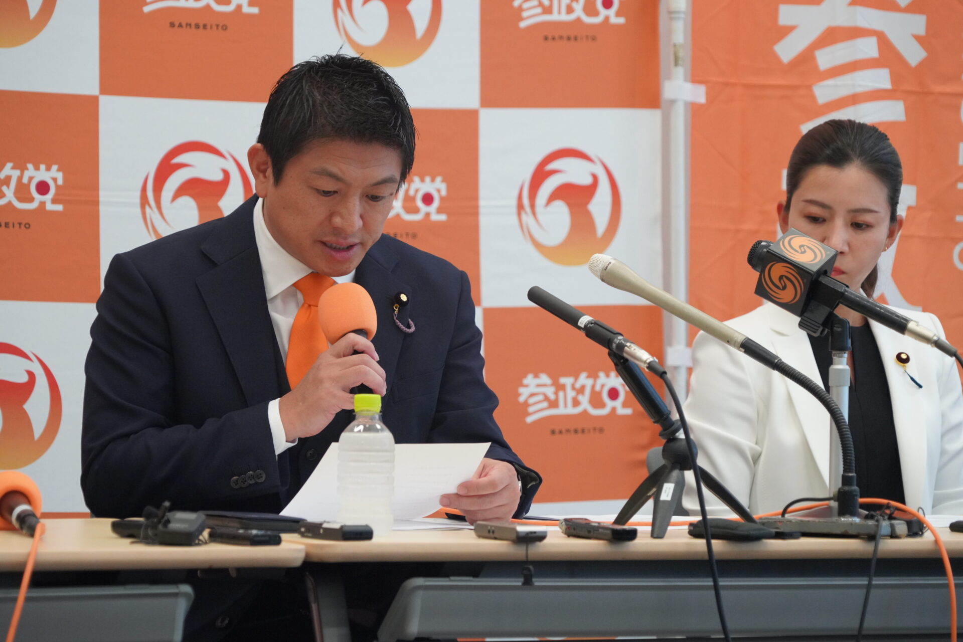 こんなことばかり記者会見でいうのも嫌ですが、我々としては非常に迷惑を被っている。だからと言ってそのせいで街頭演説をやめるかというと絶対やめません。我々の政治的な政策や言論が気に食わないから有形力の行使や騒音で邪魔をすることが正しい抗議だと、これは絶対に間違っています。ここはぜひ皆さんのペンの力でしっかりと報道して、民主主義 が健全に運営されるようにやっていただきたいと思います。