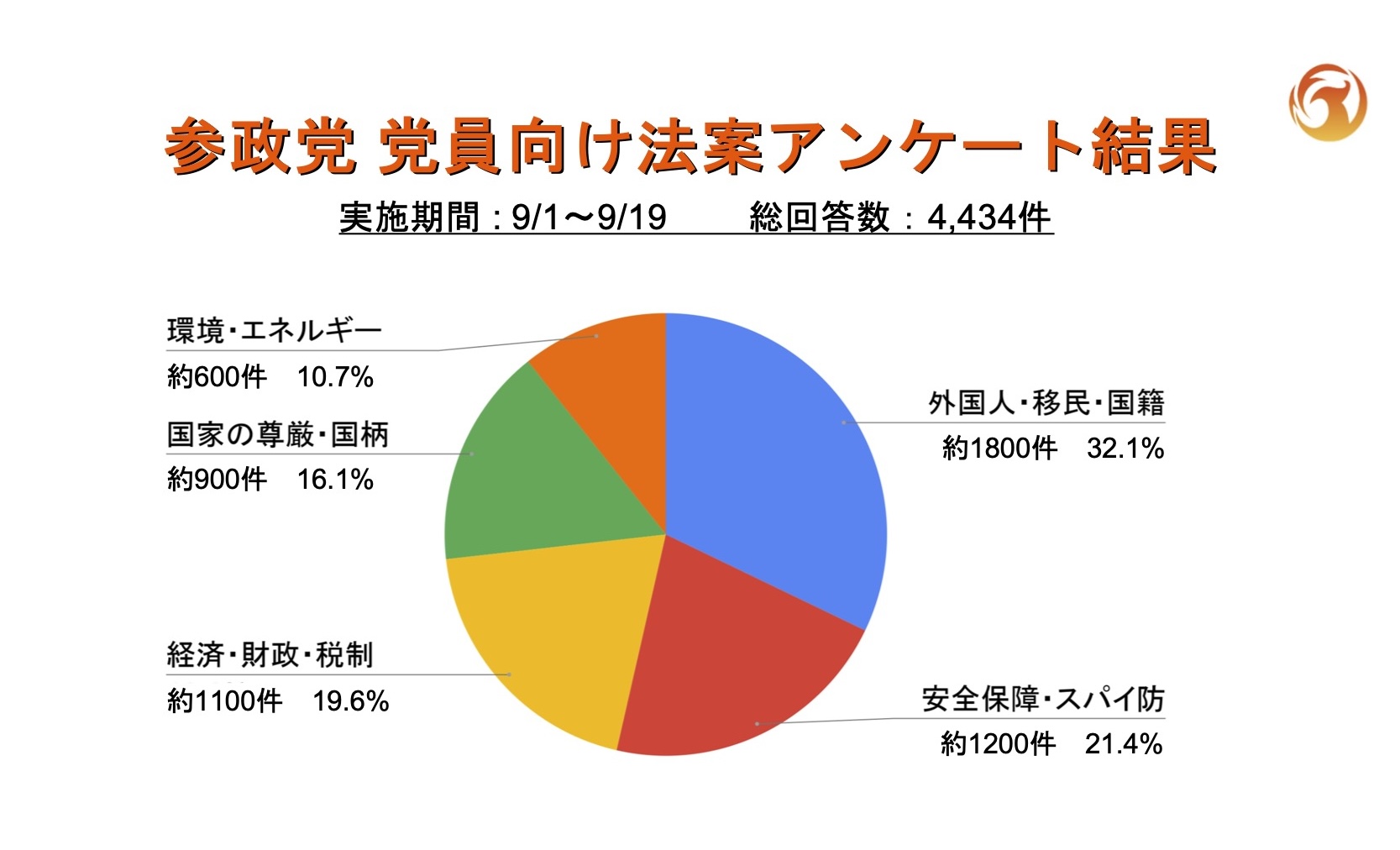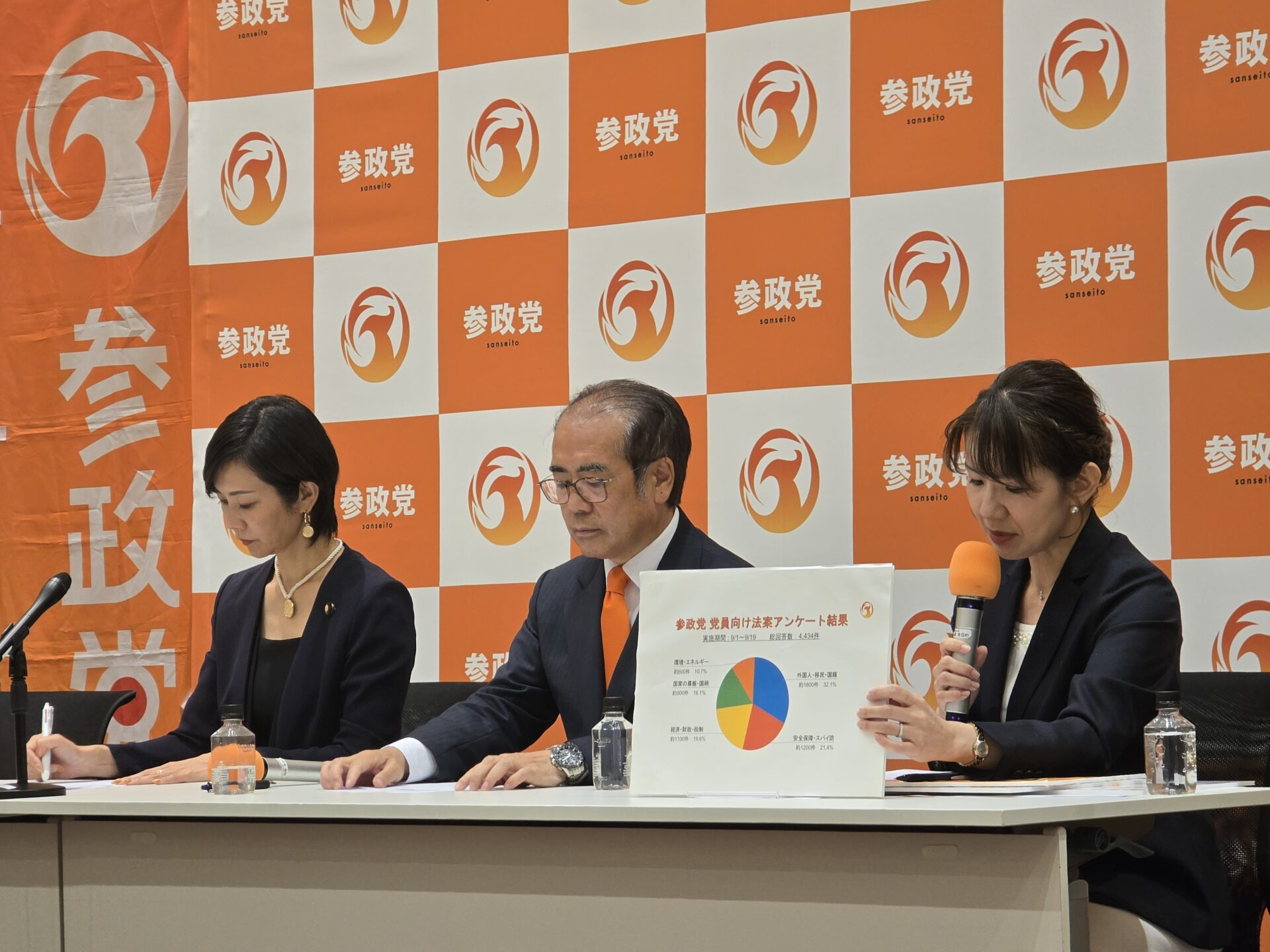 続いて神谷代表は、党員を対象に実施した「法案アンケート」についても報告。