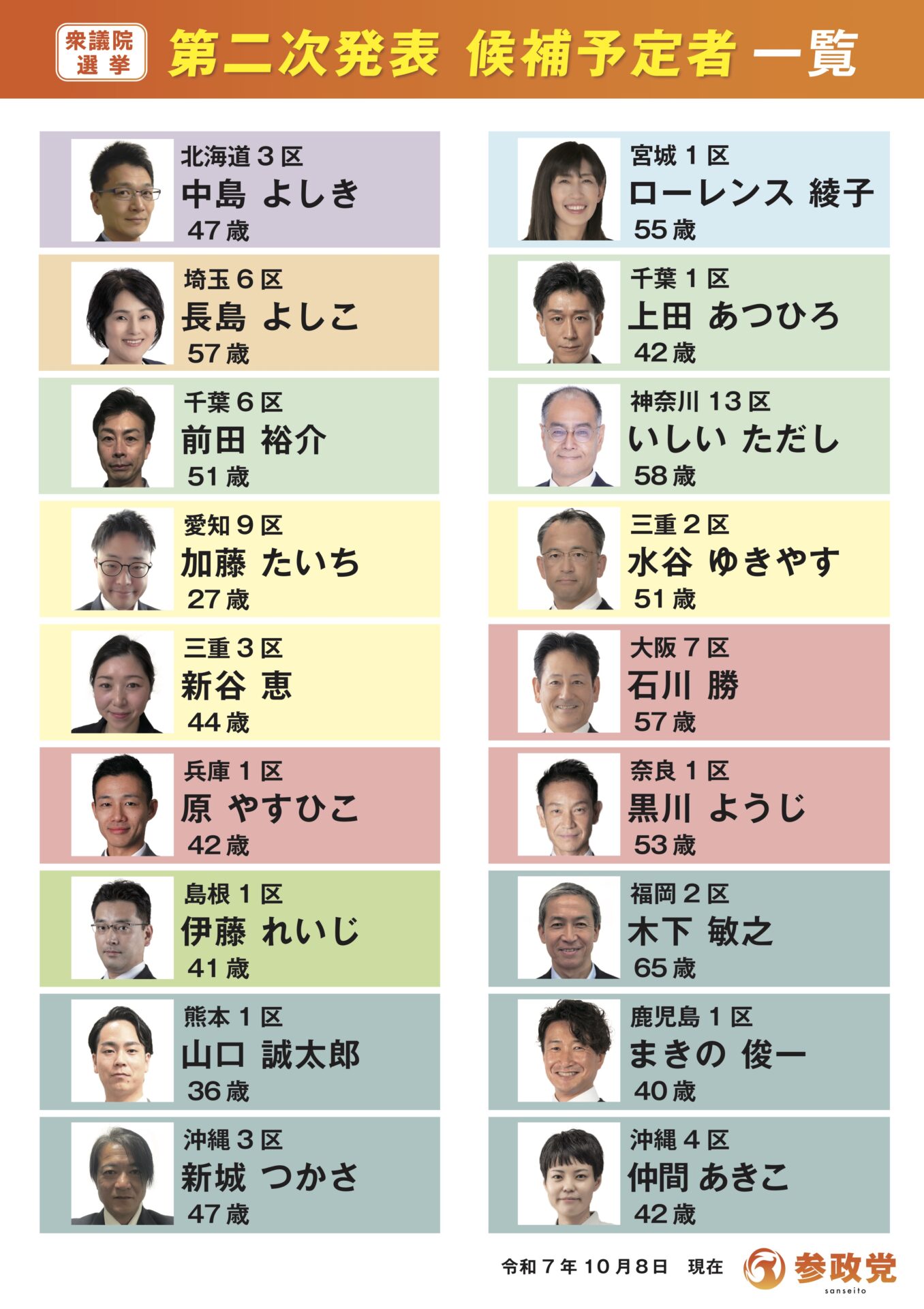 第2次 第51回衆議院議員選挙 公認候補予定者 (18名)
