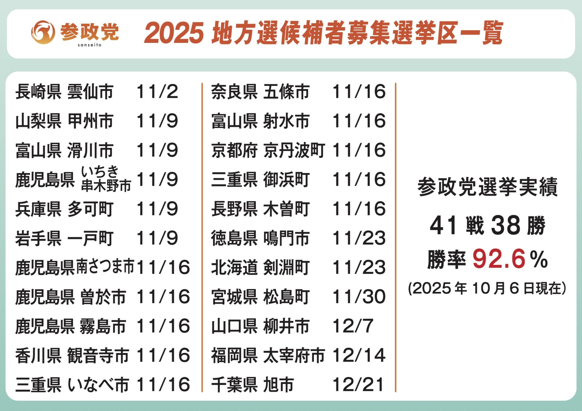「重点選挙区を中心に募集しているが、その他の地域でも公式ホームページで案内している。地域を良くしたいという志を持つ方の応募をお待ちしている」と述べました。