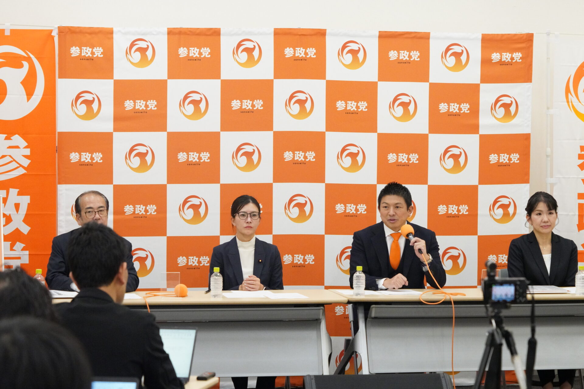 参政党が18議席となったことで、国政の主要な場に立つ機会が増えていることに触れ、「一つひとつ経験を積み、より良い議論ができるよう取り組んでいく」と述べました。