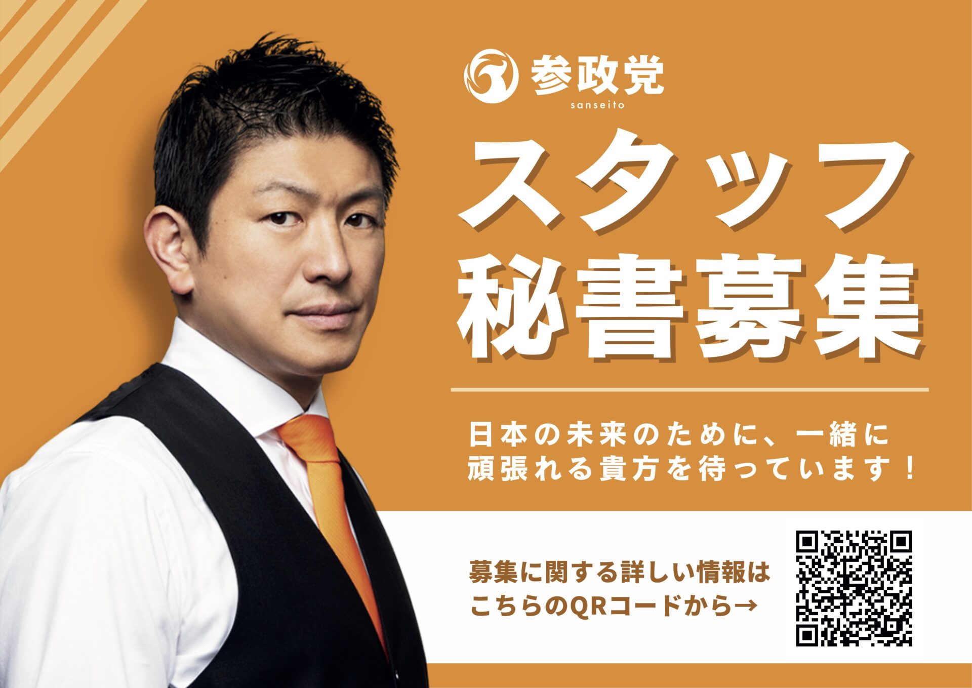 党の基盤強化のため、政策秘書や党職員などあと20名ほどのスタッフを引き続き募集しています。(リンク)