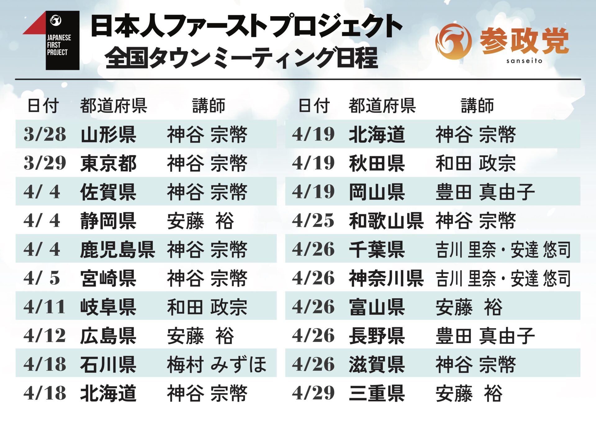 これまで進めてきた「日本人ファーストプロジェクト(リンク)」による47都道府県の行脚は4月中に完了し、5月からは活動の軸を「プロジェクト600」へと移行します。